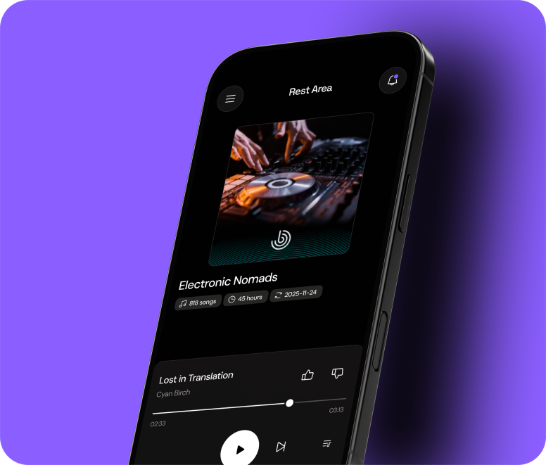 Empieza con miles de listas de reproducción seleccionadas o crea una al instante con Smart DJ. A continuación, conecta tus datos contextuales para asegurarte de que se reproduce la canción adecuada en el momento adecuado.