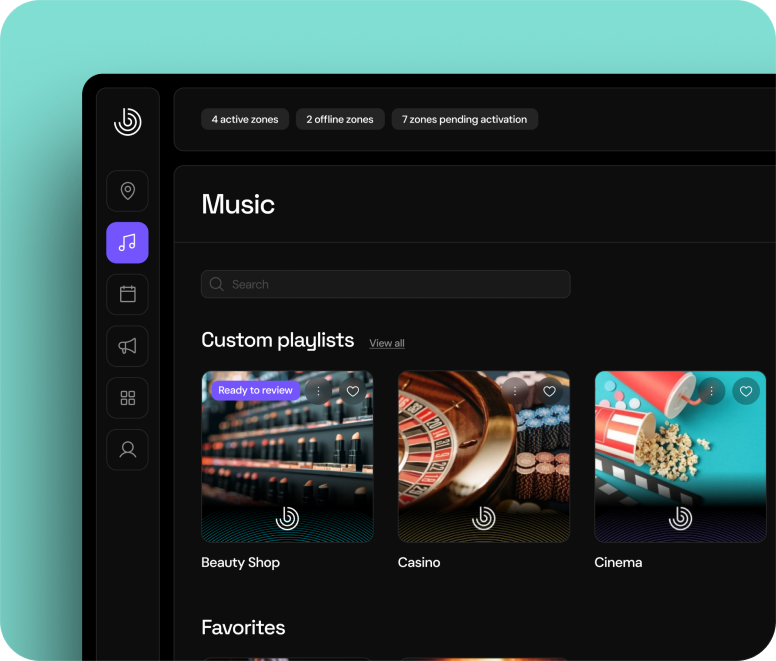 Cree el sonido de su marca, controle la reproducción en la tienda, automatice los horarios y supervise todo de forma remota.